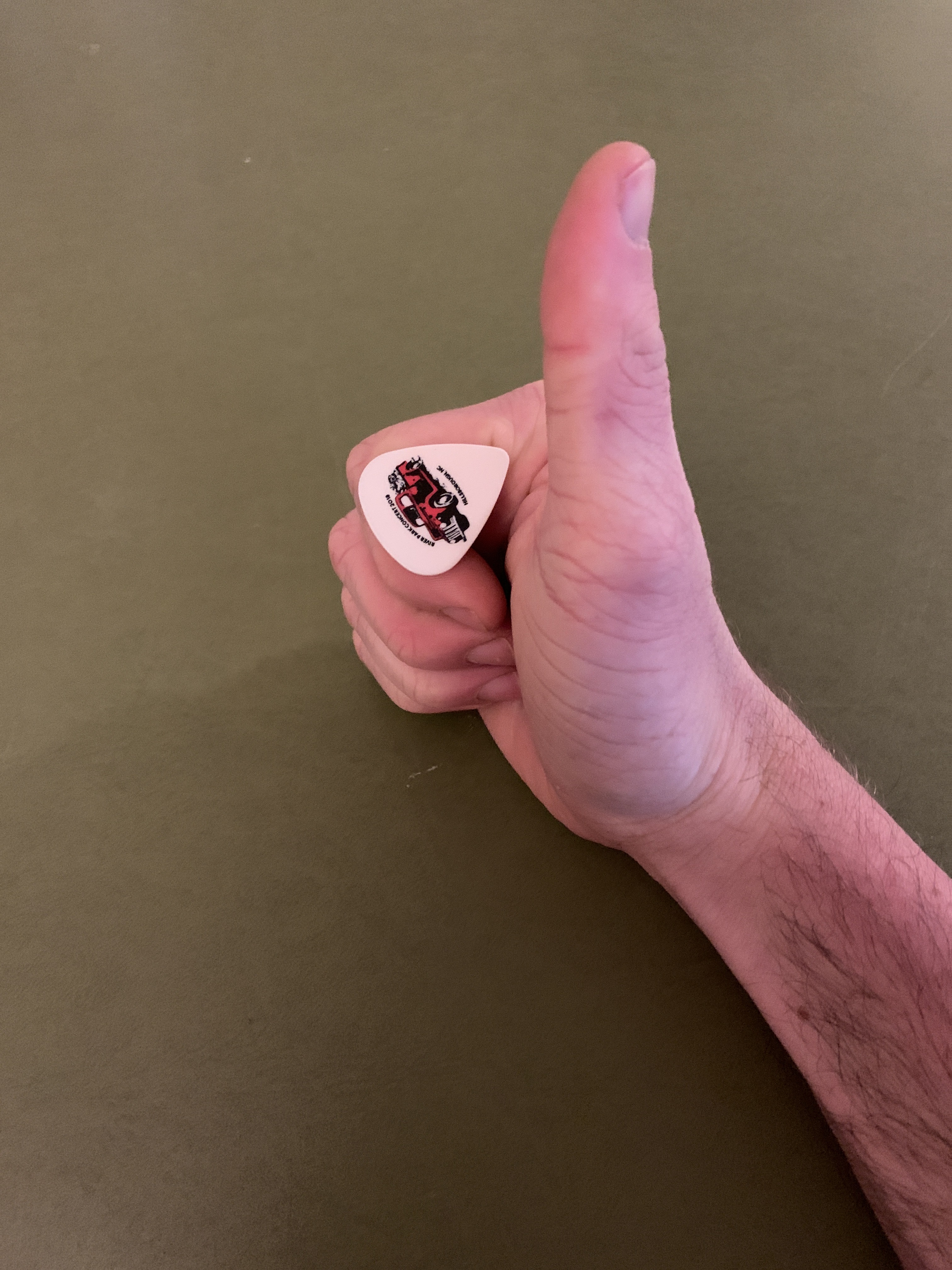 I saved up my money and bought a BlueChip pick. They’re not cheap, but they sound great. It was a few bucks more to get it engraved so I did that – go big or go home! Luckily I haven’t lost it yet.