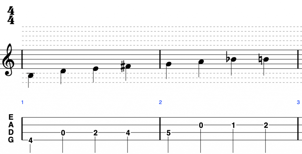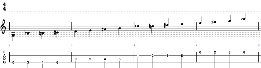 Here’s the vanilla ice cream of scales – not to say it’s boring! It’s a magical scale. Just play in time, and with the correct key, and everything you pluck will sound pure and reasonable. It goes with everything.